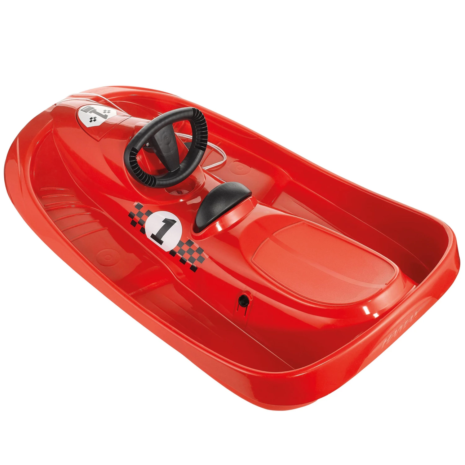 This classic 1-seat tray sledge is perfect for children 3 years and older! They can sledge alone on the snow just like real little racing drivers.Kids will be able to control their speed thanks to the metal hand brake and their direction with the steering wheel. Once down the slope they can climb back up pulling the sledge up with the handle!