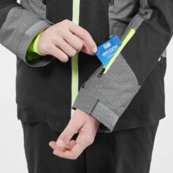 Ventilation zip openings. These allow you to modulate air circulation to better manage moisture evacuation as your child exercises and rests during their day of skiing. This jacket has ventilation zips at the front on each side of the zip.