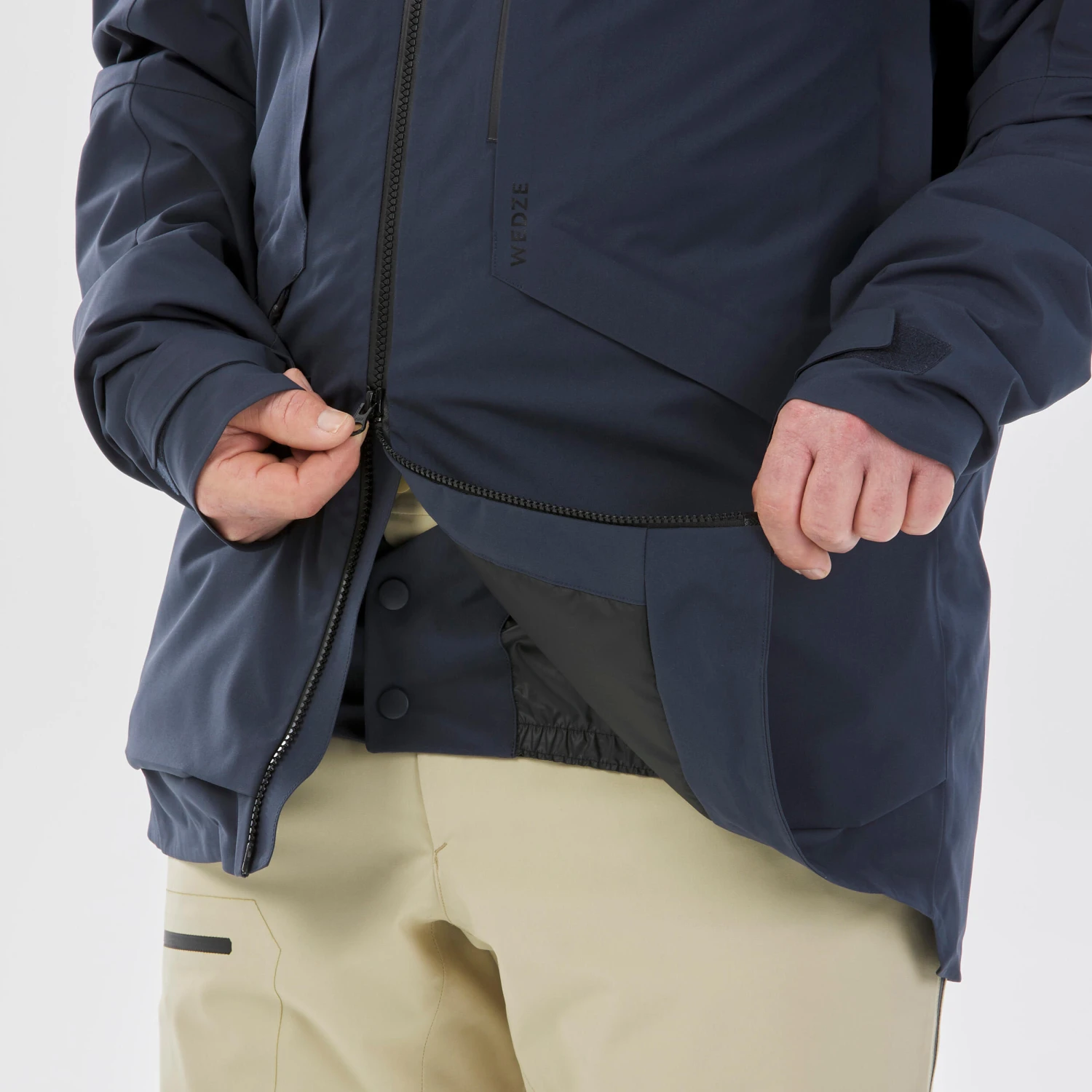 Tightening at the bottom of the jacket and snow skirt to also prevent air and snow from getting in.