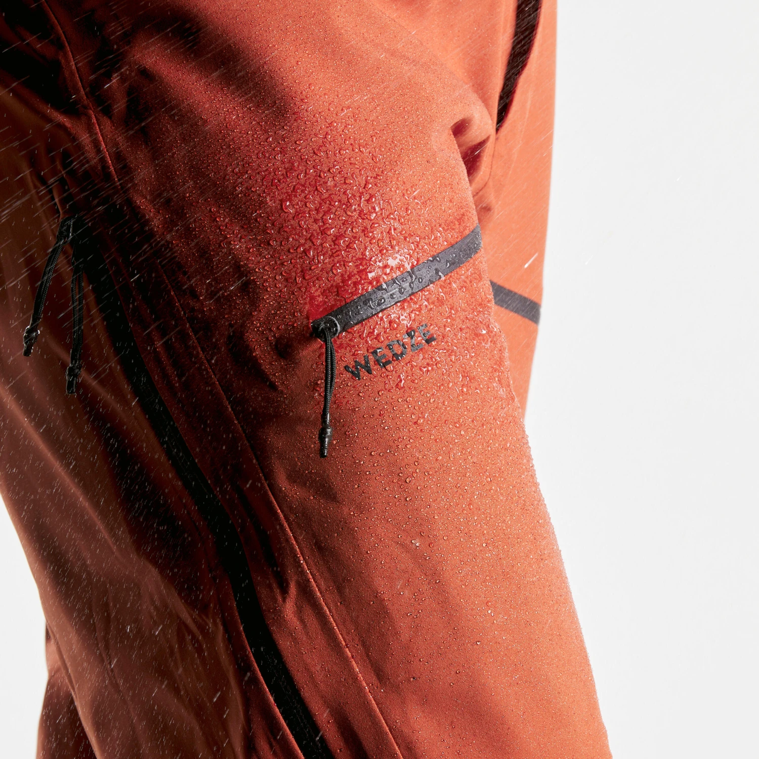 Water-repellent fabric allows water to run off its surface without seeping in. This prevents the fabric from becoming waterlogged and remains light, breathable and warm. A fabric is made water-repellent by applying a treatment to its outer surface. This treatment needs to be renewed during the lifetime of the garment (we recommend every 3 washes). All our Wedze clothing has received a water-repellent treatment.