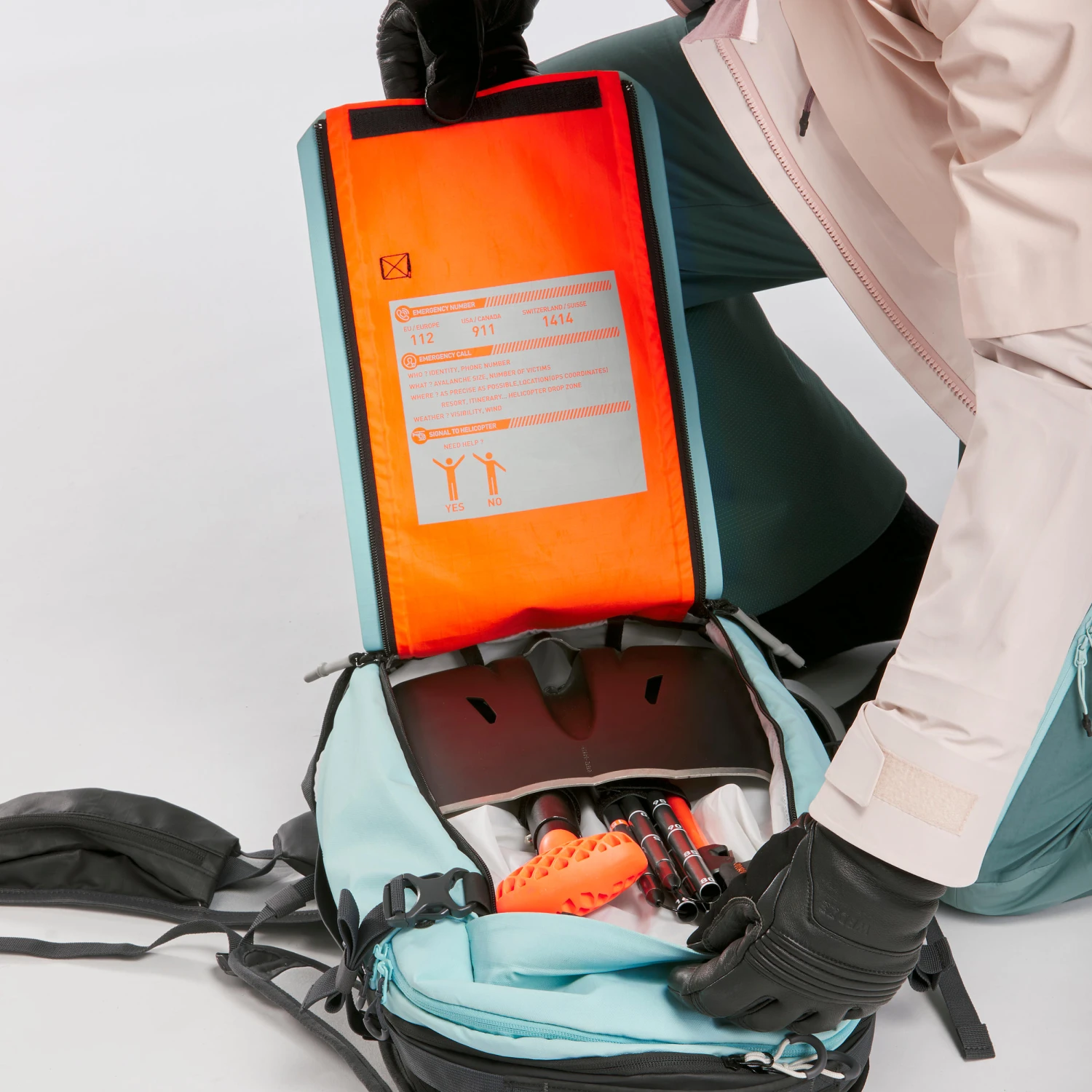 A secured pocket for the shovel and probe with quick ZIP opening.